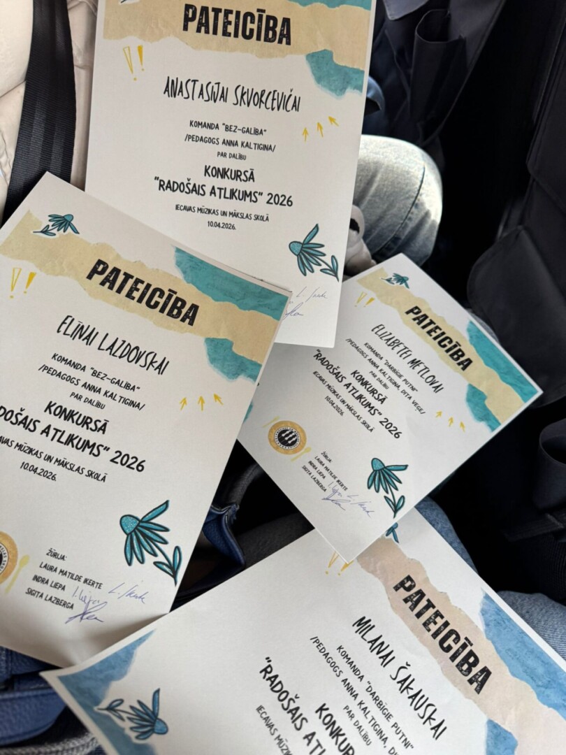 Paldies mūsu skolas audzēknēm Elizabetei, Milanai, Elīnai un Anastasijai, kuras piedalījās Latvijas mēroga vizuāli plastiskās mākslas konkursā “Radošais atlikums”