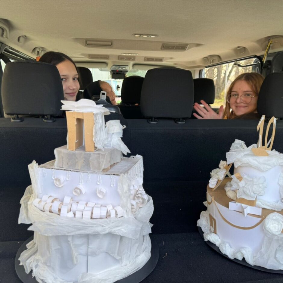 Uzdevums bija no papīra atlikumiem izveidot papīra torti ar “krēma” kārtām un rotājumiem. Ne izmantotie papīra veidi, ne tēma iepriekš nebija zināmi.