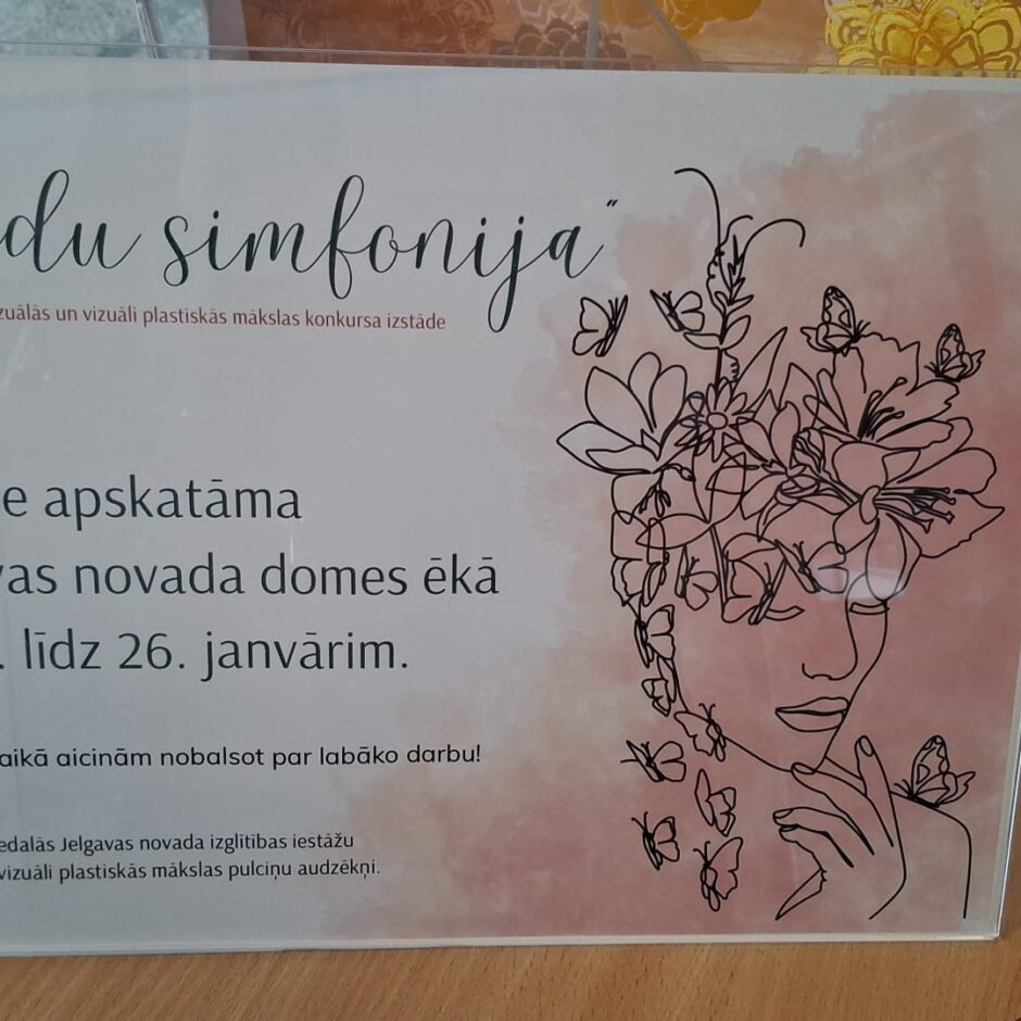 Pateicoties skolēnu radošumam, pacietībai un ieguldītajam darbam, tapusi konkursa „Ziedu simfonija” mākslas izstāde, kas no 12. līdz 26. janvārim apskatāma Jelgavas novada domes telpās (3. stāvā).